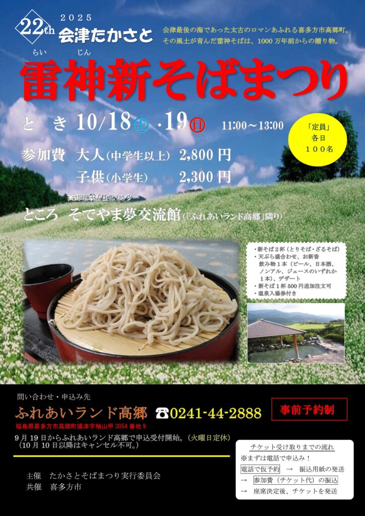 今年、第22回となる会津たかさと雷神新そばまつりが開催されます。