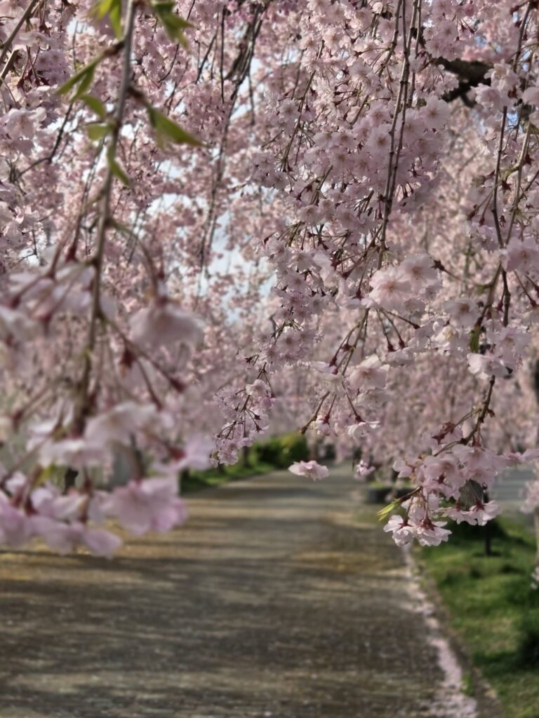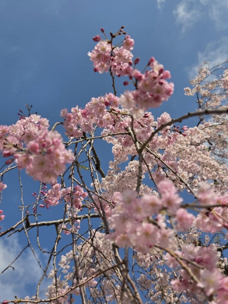 今日以降は晴れの予報が続いており、しだれ桜は満開のピークは過ぎたものの、散り際がとても美しく、まだまだ楽しんでいただけます
