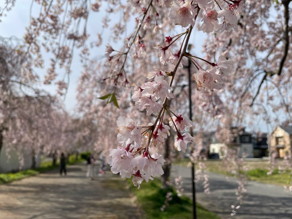 しだれ桜は全体的に散り始め、残りわずかな花びらが風に舞っています![]()