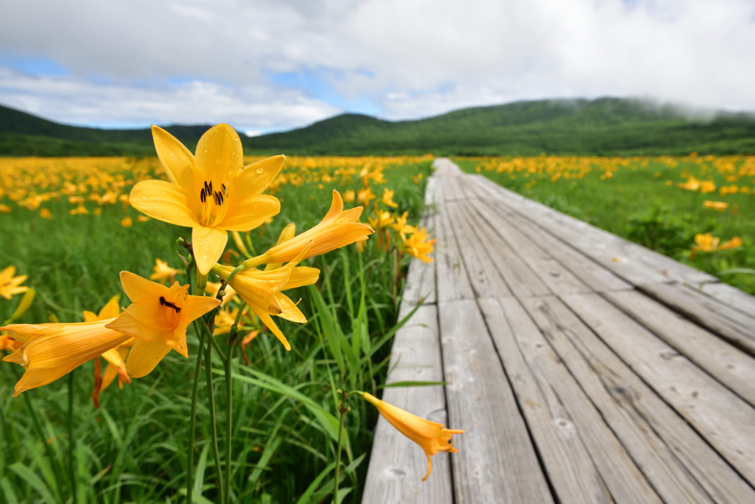 雄国沼散策にあたっては、北塩原村側の雄国沼せせらぎ探勝路、雄国パノラマ探勝路などをご利用ください。